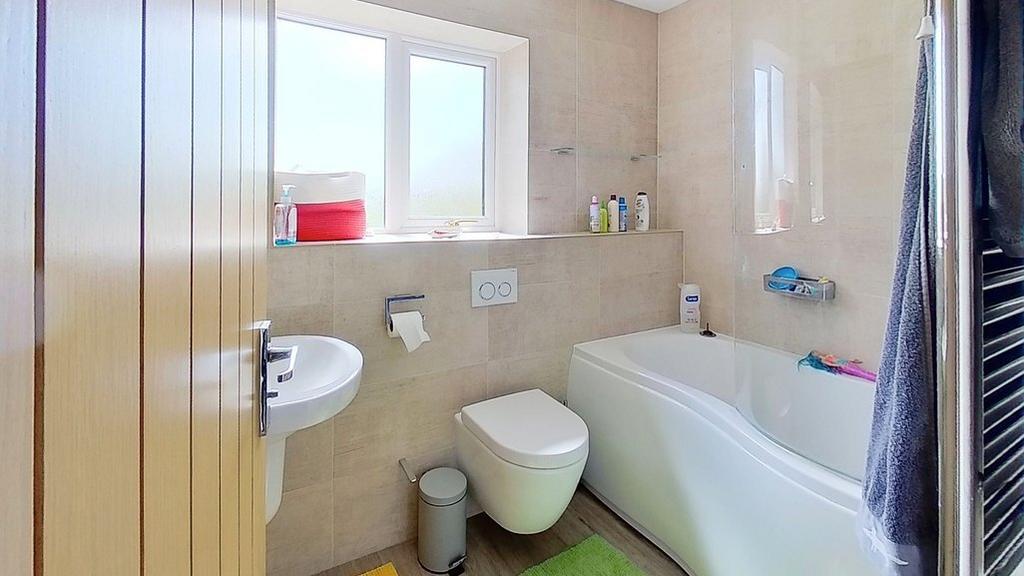 Upstairs, the first floor comprises four well-sized bedrooms. The master bedroom benefits from an en-suite shower room, while the remaining three bedrooms are ideal for children, guests, or even a home office. A modern family bathroom serves the additional bedrooms, ensuring ample space for all.