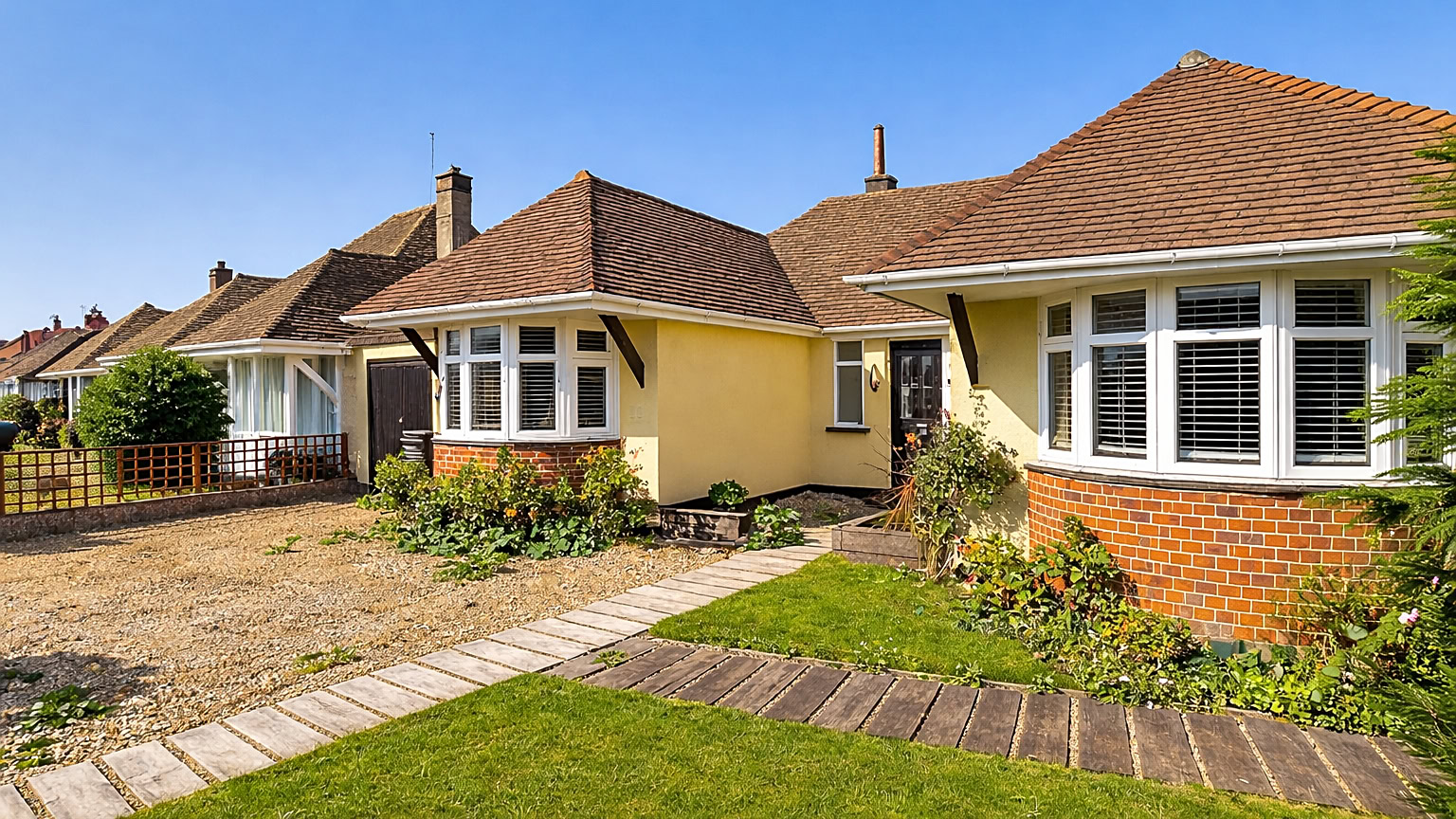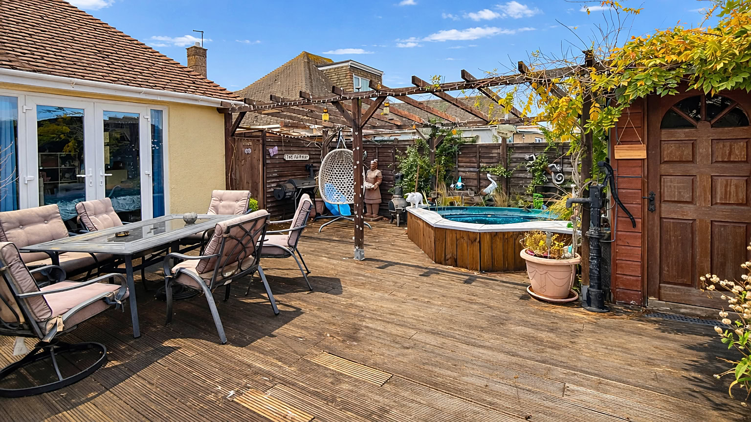 Outside, the bungalow sits on a generous plot with a large garden, perfect for outdoor entertaining or simply enjoying the sunshine. There is also a garage and off-road parking, providing both convenience and additional storage. The property offers clear potential for future extensions, subject to planning consent, giving buyers the opportunity to further expand and tailor the home to their lifestyle.