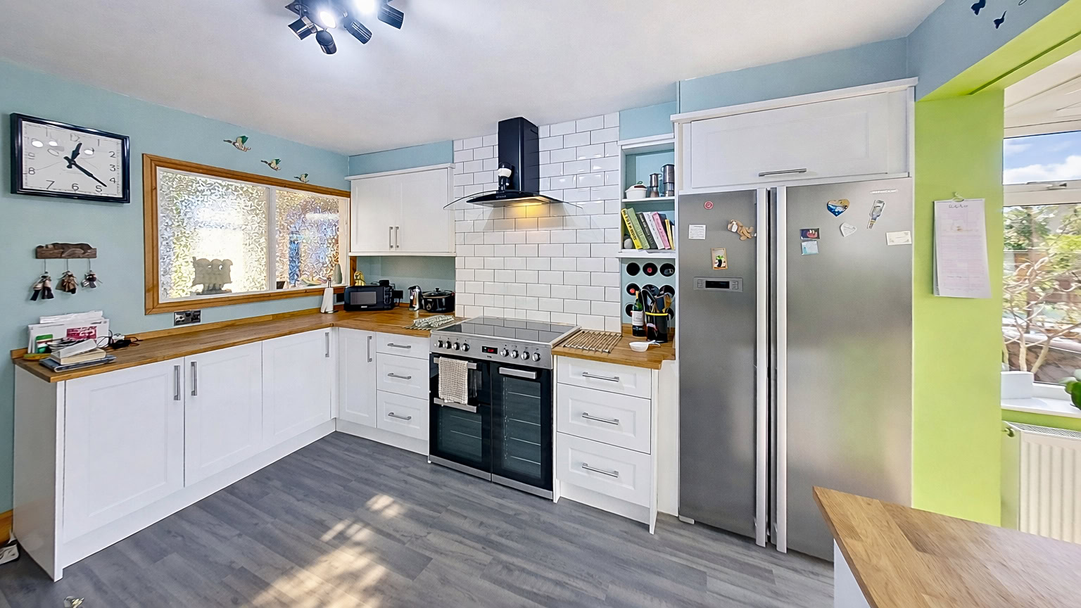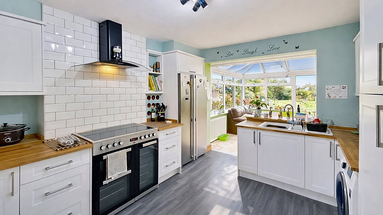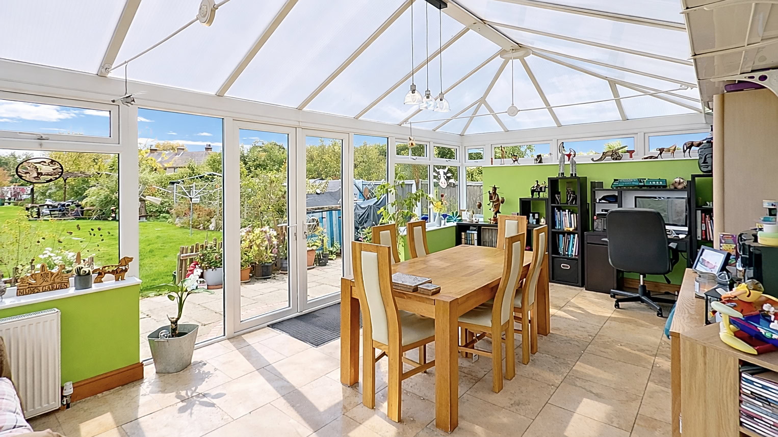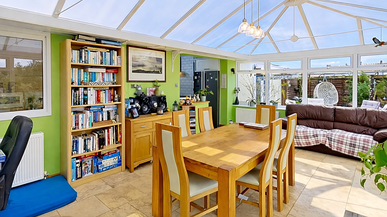 The bright and inviting lounge is a standout feature, filled with natural light and offering a welcoming space to relax and unwind. The kitchen is thoughtfully designed, providing plenty of storage and workspace. To the rear, a large extension enhances the living space even further, currently used as a dining area. This room is exceptionally versatile and could easily serve as a second sitting room, home office, hobby space, or playroom — adaptable to suit the needs of any buyer.