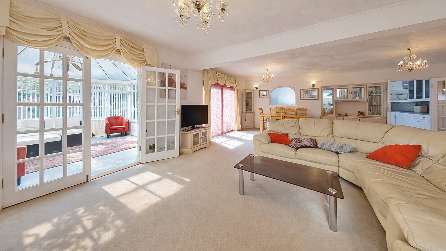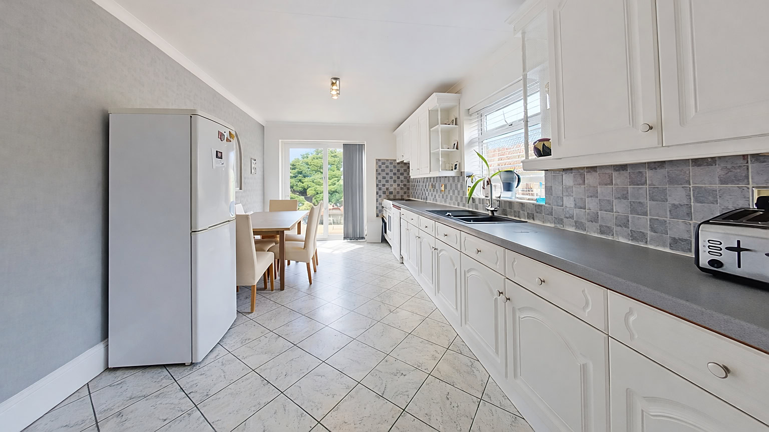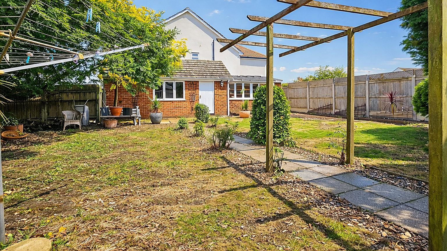 As you step inside, you are greeted by a generous entrance hall, which sets the tone for the airy, well-proportioned rooms throughout the home. At the front of the property are two double bedrooms, both filled with natural light. Just behind these, you’ll find a third bedroom, a family bathroom, and a practical utility room. The rear of the house opens up into a large, inviting lounge/diner, complete with doors leading to a charming conservatory, which in turn opens onto the garden. This layout creates a perfect space for both relaxation and entertaining. The adjoining kitchen/breakfast room also offers direct access to the garden, providing a seamless flow between indoor and outdoor living. A second bathroom is conveniently located just off the lounge/diner.