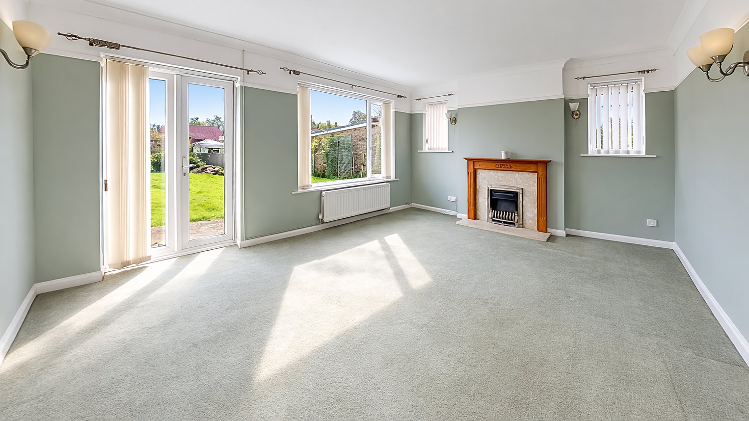 Internally, the accommodation is arranged in a practical and comfortable layout. To the rear, there is a good size lounge with several windows allowing for an abundance of natural light, together with a door opening directly onto the large rear garden. The kitchen is also positioned at the rear and leads through to a small conservatory, which in turn provides further access out to the garden. The two main bedrooms are located at the front of the property, with the third bedroom situated centrally, while the bathroom completes the internal accommodation.