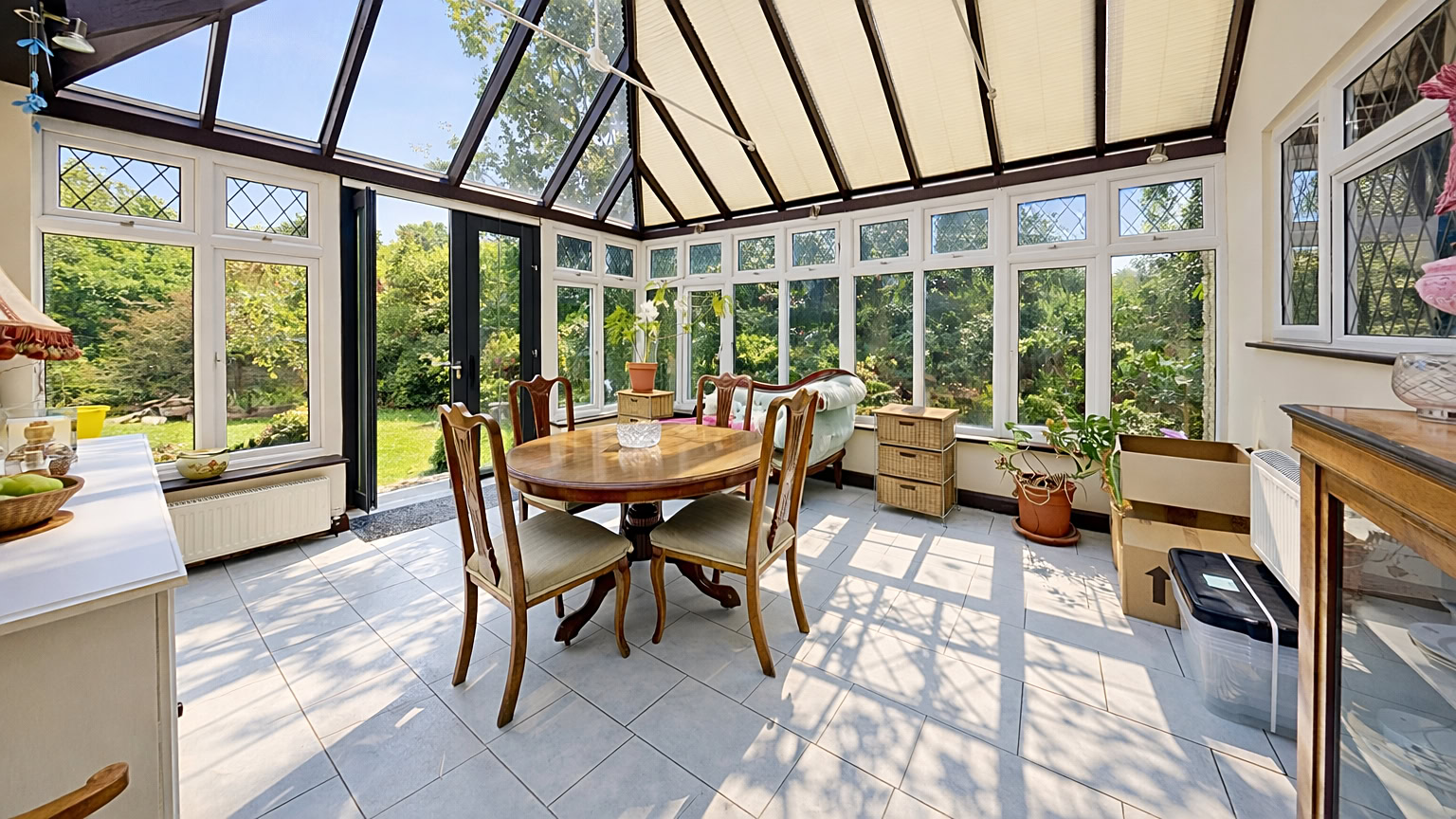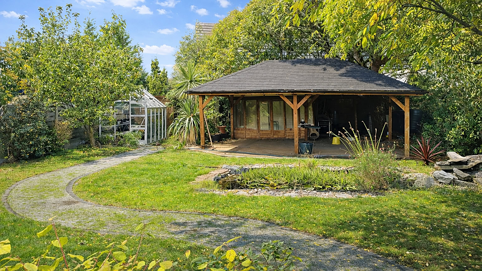 Externally, the rear garden is a real highlight. Spacious and well maintained, it features a summer house and decked seating area at the far end, making it a perfect spot for summer barbecues or simply unwinding at the end of the day. The front garden is mature and provides excellent privacy from the road, while a driveway to the side leads to a garage, offering both off-road parking and practical storage solutions.