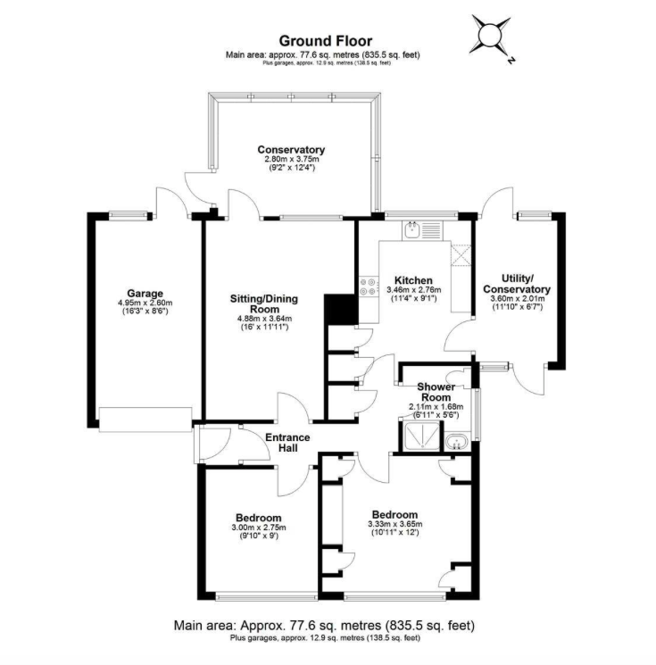 Internally, the bungalow is in need of some updating but remains perfectly liveable, making it ideal for those wanting to move in and modernise over time. The main living accommodation is found at the rear, where the lounge opens into a conservatory that overlooks the rear garden, creating a bright and relaxing space. The kitchen is also positioned at the rear and opens out to a utility area providing space for washing and drying. This also has door leading to the front and rear gardens, making it practical and well connected to the outside.