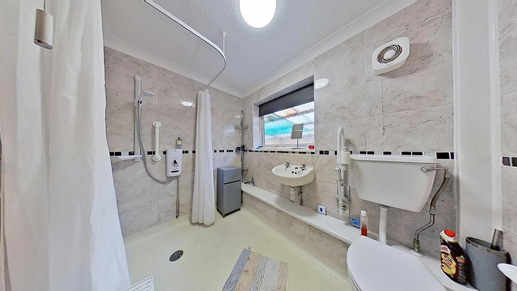 Both of the bedrooms are quietly positioned at the rear of the property, offering a peaceful outlook over the garden. The accommodation is completed by a practical wet room, providing accessibility and ease of use. Outside, the property boasts a neatly maintained garden to the front, with a driveway to the side that leads to a garage—ideal for storage or secure parking. The rear garden is a real asset, offering a private and manageable outdoor space which also features a fully powered lodge. This additional building is incredibly versatile and could be used as a home office, hobby room, or even guest accommodation, subject to any necessary consents.