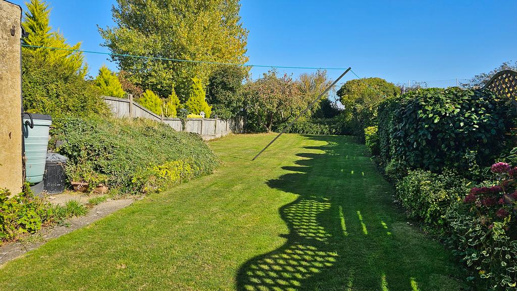 Externally, the property benefits from front and rear gardens. The rear garden is particularly spacious, offering plenty of potential for landscaping or further development, subject to planning. The front garden includes a driveway to the side, which leads to a detached garage—ideal for secure off-street parking or additional storage.