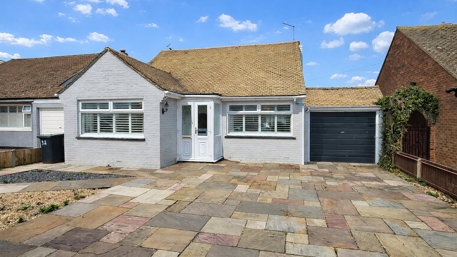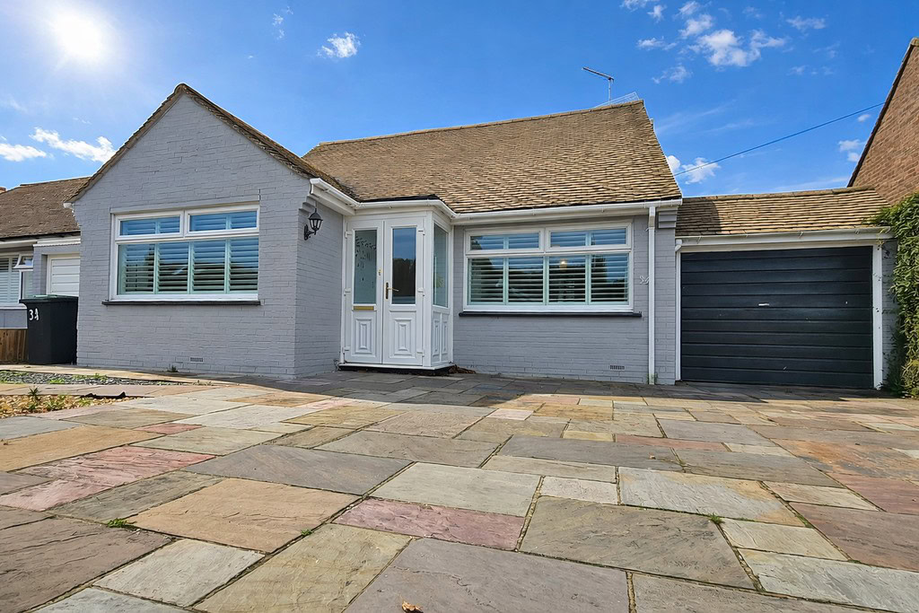 Externally, the bungalow benefits from a private rear garden, offering a low-maintenance outdoor space with room to enjoy the sunshine or cultivate further. To the front, a large driveway provides ample off-road parking and leads to a garage, offering practical storage or secure vehicle space.