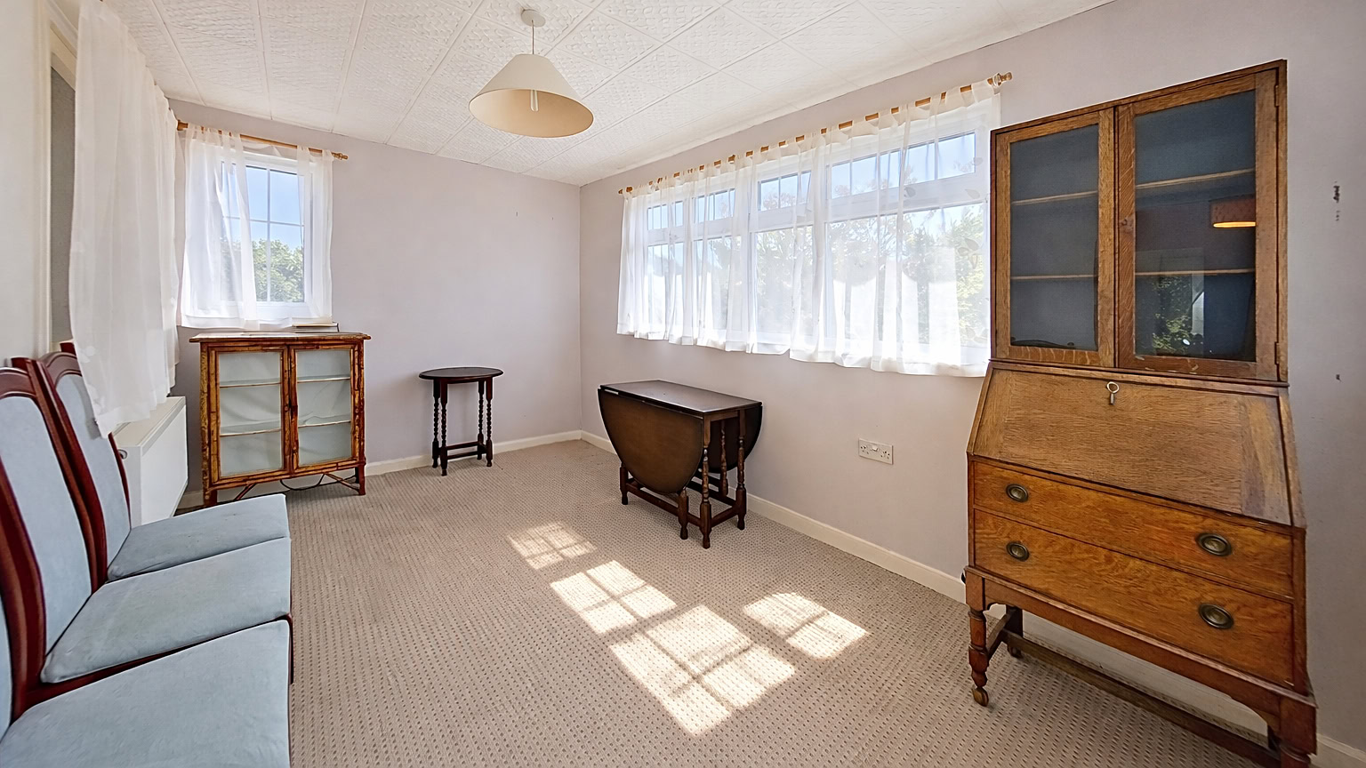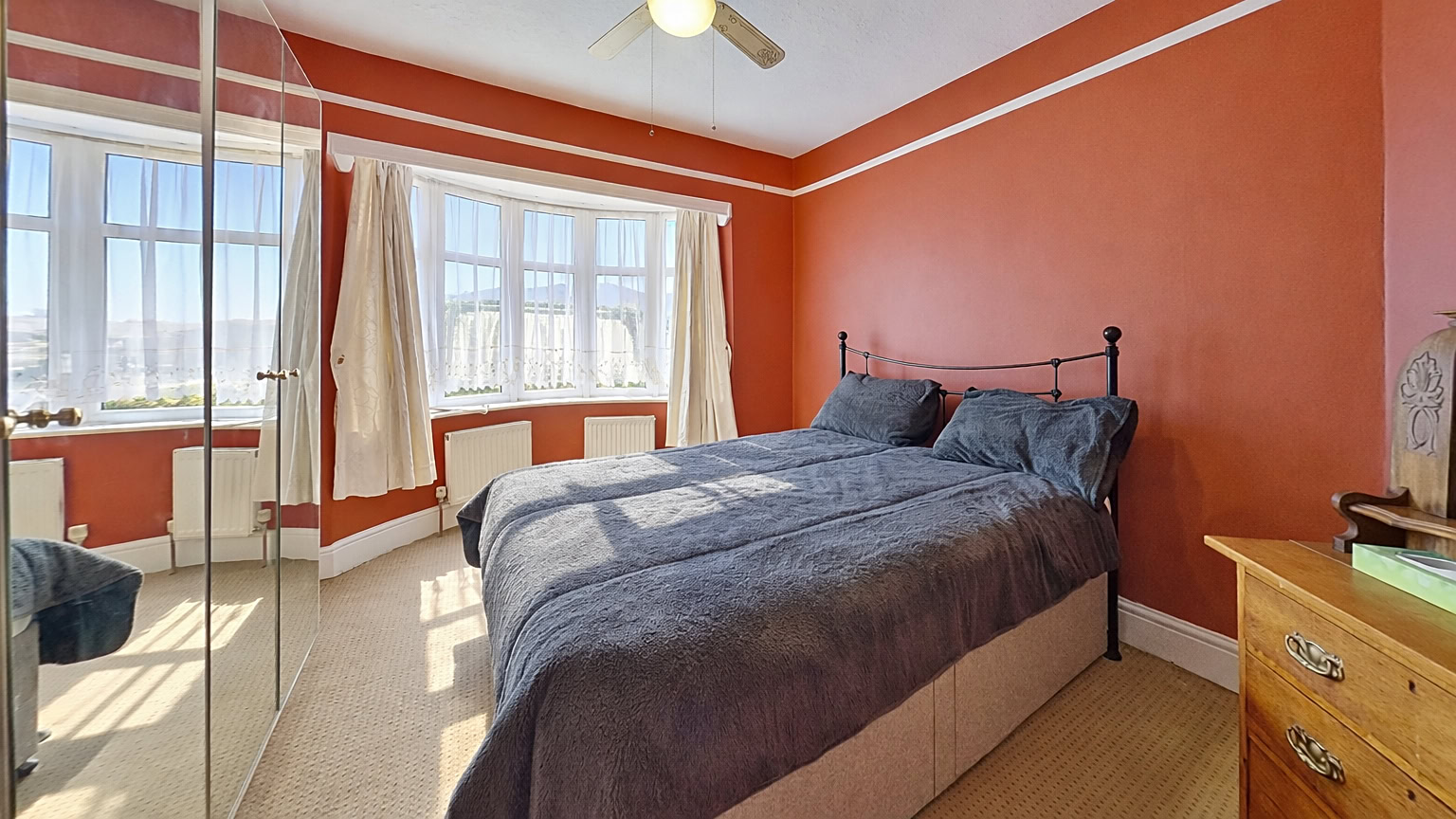 Upon entering the property, a generous hallway offers a warm welcome and sets the tone for the rest of the home. To the right is a bright and airy lounge, enhanced by a charming bay window to the front, flooding the space with natural light and offering a comfortable area for relaxation. Opposite, the master bedroom mirrors the lounge with its own bay window, creating a light-filled and inviting retreat. A second double bedroom is situated just behind, also offering good proportions and versatility. To the rear of the property is a third bedroom, accessed via a useful study area, providing an ideal setup for those in need of a home office or hobby room.