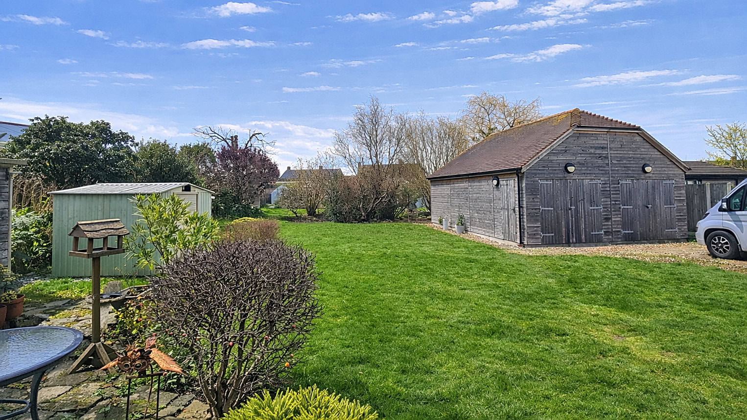 The setting is a real highlight, with the home enjoying a large plot that wraps around the property, creating gardens to the rear and sides. The expansive rear garden provides an excellent space for families, entertaining or simply enjoying the outdoors, while the sizeable double garage offers superb storage, workshop potential or secure parking.