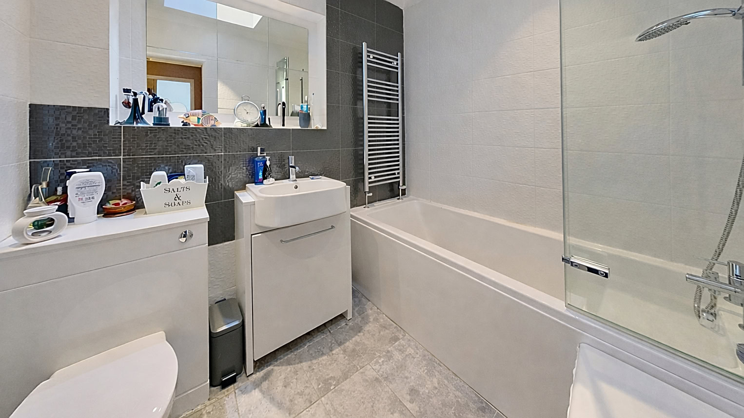 The modern kitchen also lies to the rear of the property, designed to make the most of the outlook while providing a practical and stylish workspace. A contemporary bathroom with a clean finish completes the internal accommodation.