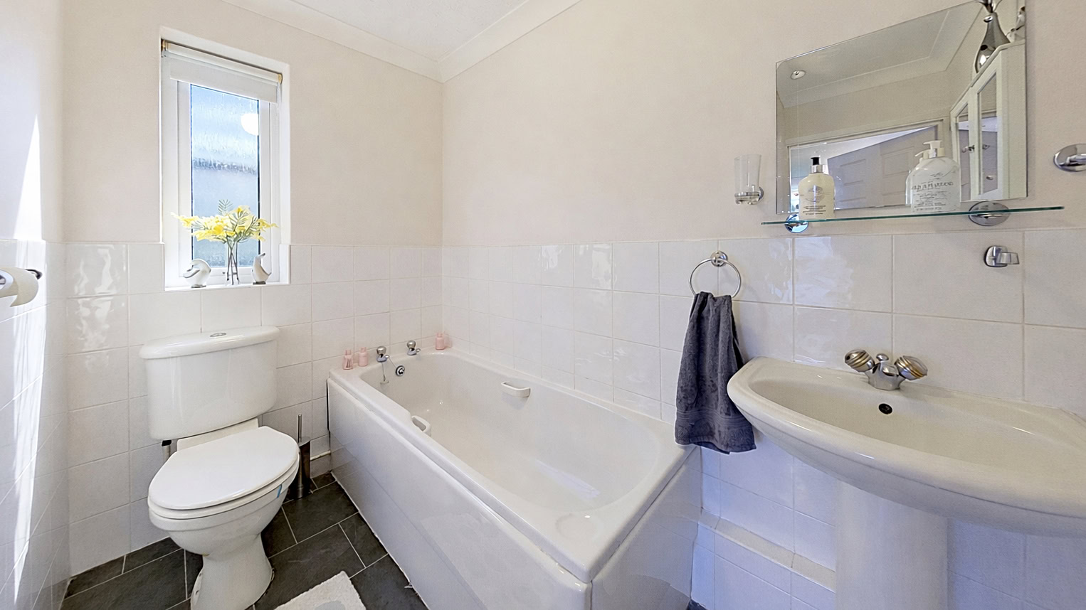 Upon entering, you are welcomed by a spacious hallway that runs the length of the home, creating a wonderful sense of openness. The accommodation comprises three good-sized bedrooms, with the principal bedroom benefitting from its own en-suite bathroom, ideal for privacy and comfort. The main family shower room is sleek and stylish, serving the remaining two bedrooms with ease.