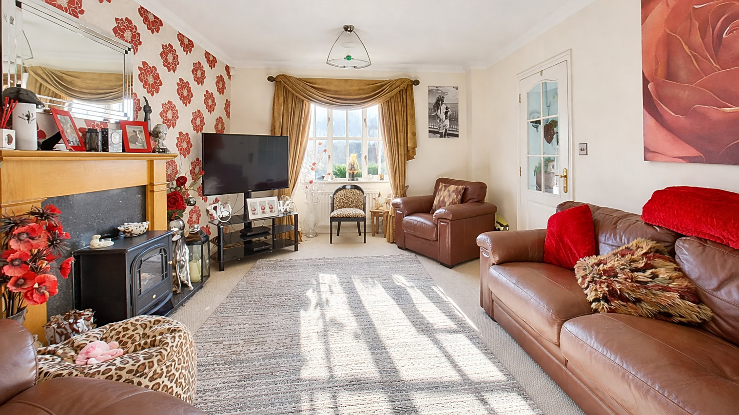 On the ground floor, the home features three inviting reception rooms, including a spacious lounge ideal for relaxing or entertaining guests, a separate dining room perfect for family meals and special occasions, and a cosy snug that offers a flexible space for a playroom, home office or additional sitting room. The kitchen is generously sized and designed to be the heart of the home, offering plenty of workspace and storage. Adjoining the kitchen is a practical utility room, keeping laundry and household tasks neatly tucked away.