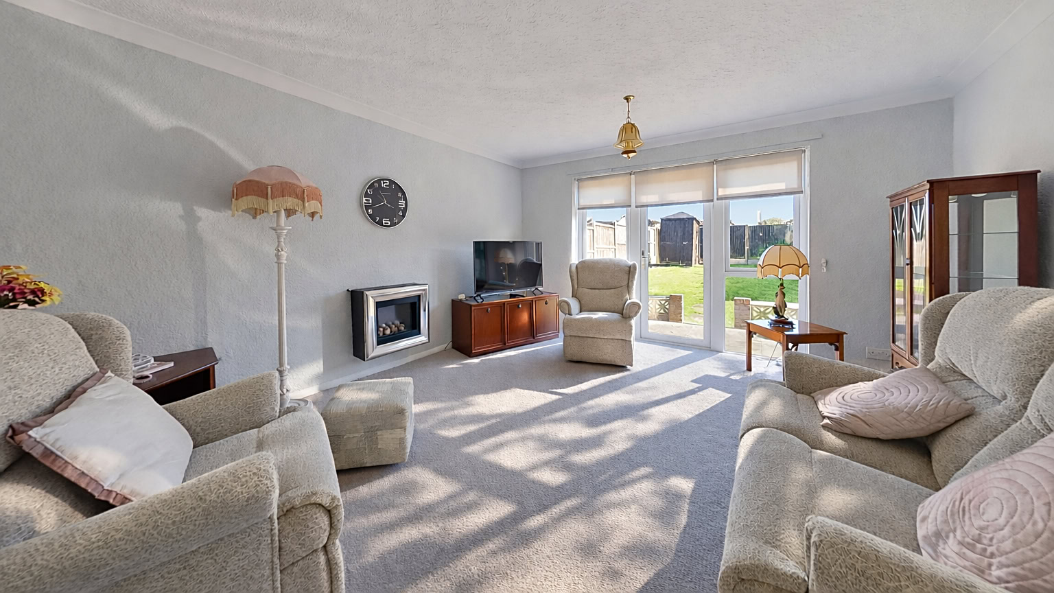 The property is approached via a good size entrance porch which provides a practical space before entering the main home. Once inside, a central hallway gives access to all rooms, creating a well-balanced and easy-flowing layout. To the rear, the spacious lounge is a particular feature, enjoying a pleasant outlook over the garden and benefitting from doors that open directly outside, allowing for plenty of natural light and a seamless connection to the outdoor space.