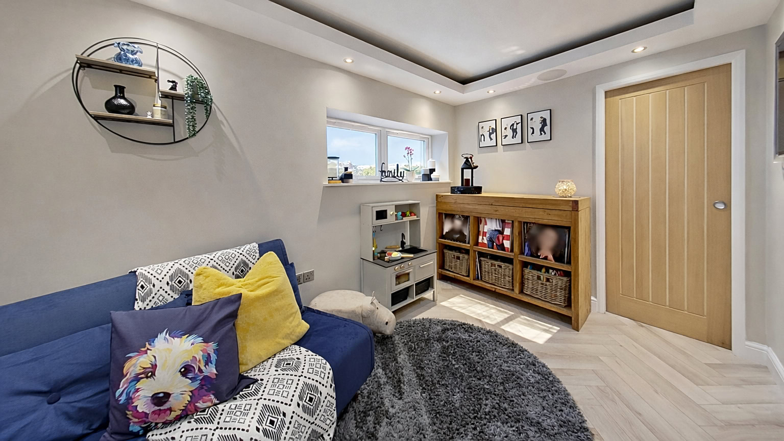 The ground floor has been thoughtfully arranged to provide both comfortable living space and practical features. To the rear of the property is a generous lounge/diner which forms the heart of the home, complete with a stylish media wall incorporating a TV, soundbar and remote-controlled gas fire. This bright and welcoming space also features a door leading directly out to the rear garden, creating a great flow between indoor and outdoor living. At the front of the property, the original garage has been partly converted to create a second reception room. This versatile space is perfect for use as a home office, children's playroom, cinema room or additional seating area, and benefits from ceiling speakers and LED lighting. This room leads through to a useful utility room, providing additional storage and laundry space. The modern fitted kitchen is also positioned at the front of the house, while a convenient WC completes the ground floor layout.