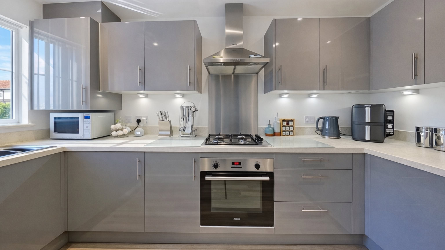 Internally, the property is beautifully presented with a modern finish throughout. The stunning kitchen has been designed in a contemporary style and features built-in appliances and attractive fittings, creating a sleek and stylish space with a quality finish. To the rear, the spacious lounge diner offers an excellent area for both everyday living and entertaining, with plenty of room for seating and dining furniture. A convenient downstairs WC completes the ground floor accommodation.