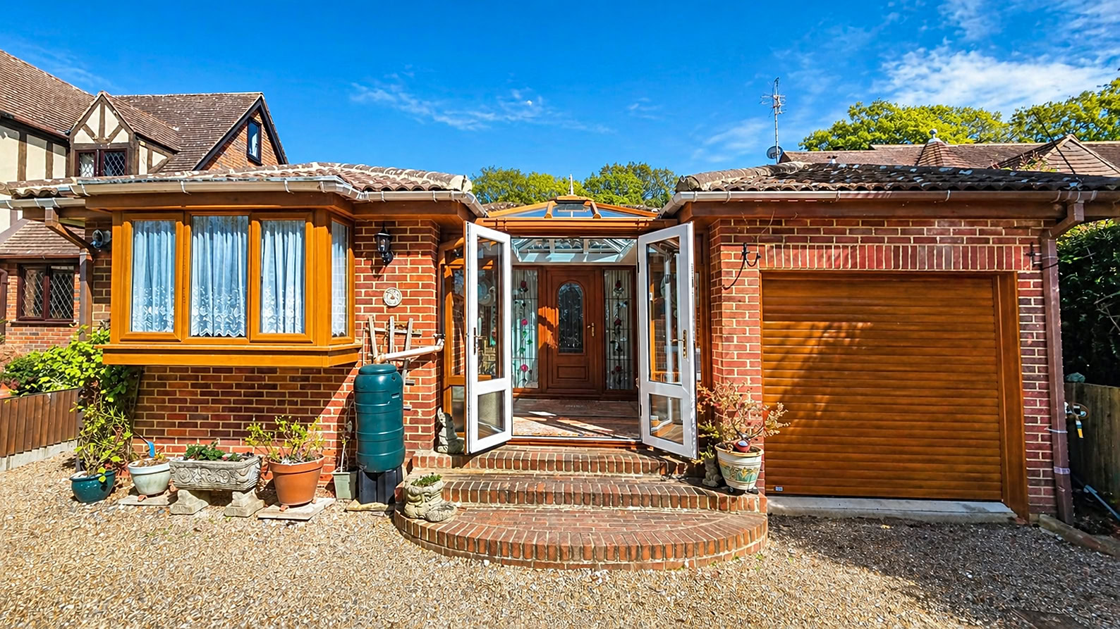 Inside, the bungalow offers a spacious and flexible layout, adaptable to a variety of needs, with the option to use it as a four-bedroom with one reception room or a three-bedroom with two reception areas. The entrance porch leads into a welcoming hallway, with the master bedroom just to the left, featuring an ensuite shower room for added privacy. Two further double bedrooms offer comfortable space for family or guests, while the rear-facing lounge opens into a bright conservatory overlooking the garden, creating an ideal area for relaxation and entertaining. The generously sized kitchen allows ample space for a table and chairs, perfect for casual dining, while the dining room gives extra space for the more formal occasions. The family bathroom completes the interior layout.